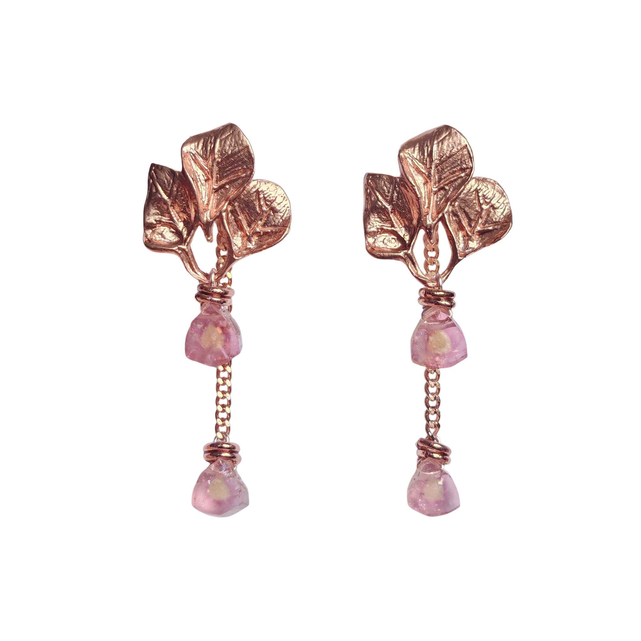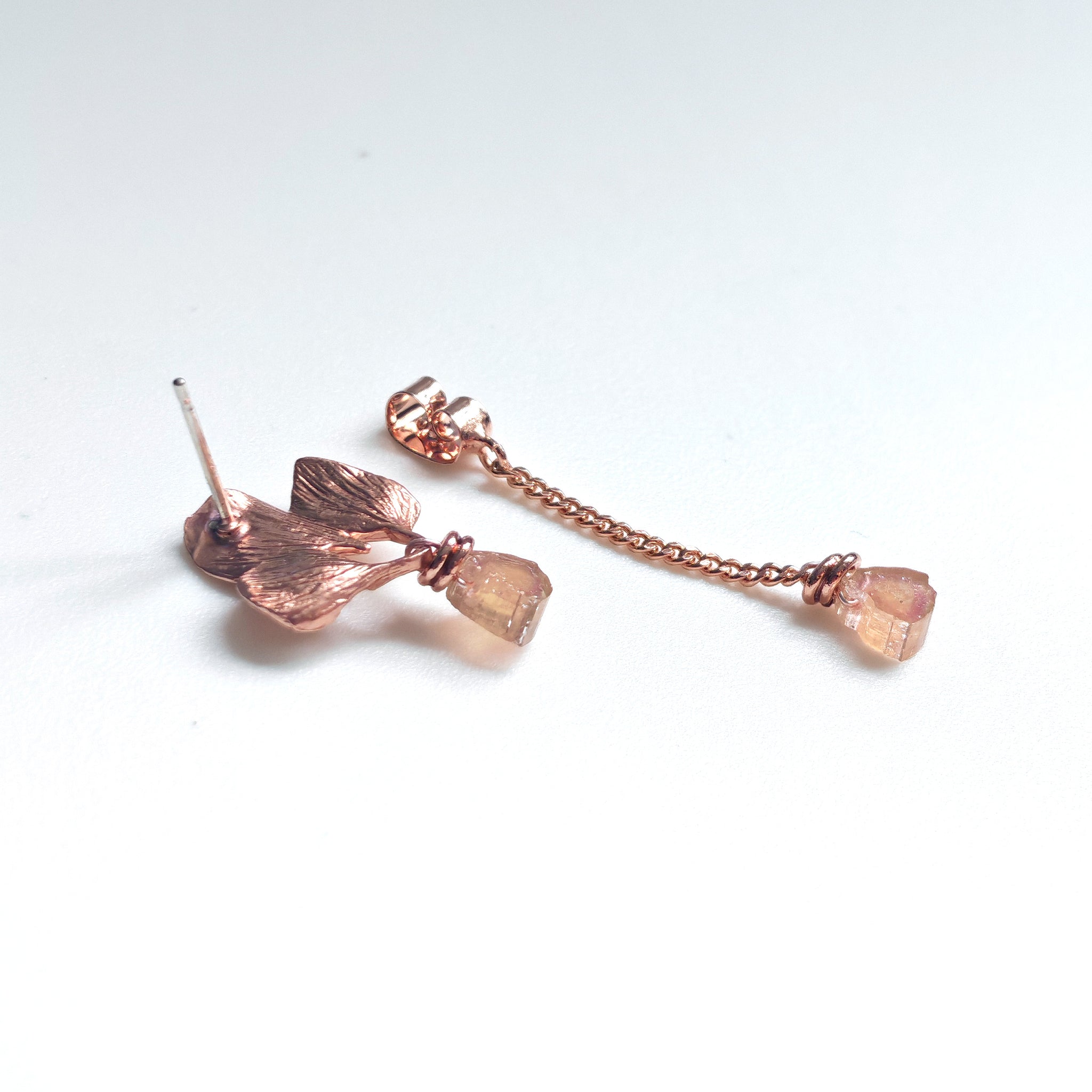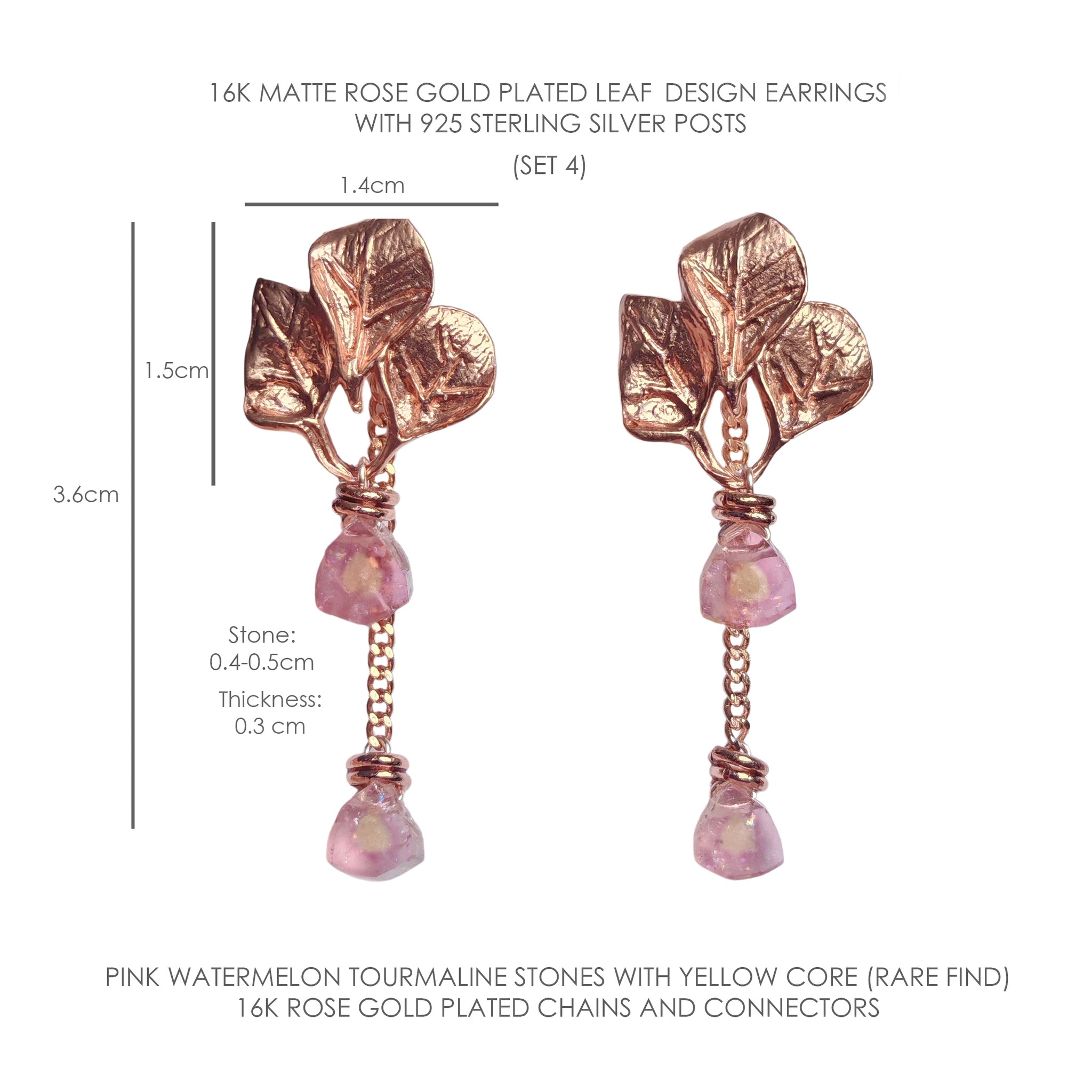 The tourmaline/watermelon tourmaline stones in this collection are sliced and polished with raw edges. These gems naturally have pre-existing chips, scratches, uneven corners, and inclusions. They are chosen for their rare colours and unique textures/patterns. Each pair is one of a kind.